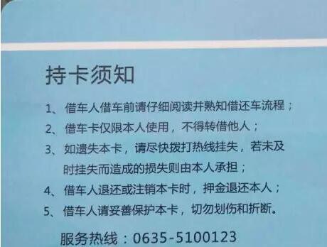 ① 非人為原因造成借車卡不能使用的,在其無(wú)借車行為時(shí),到管理中心免費(fèi)更換。有借車行為,先還車,再免費(fèi)更換;