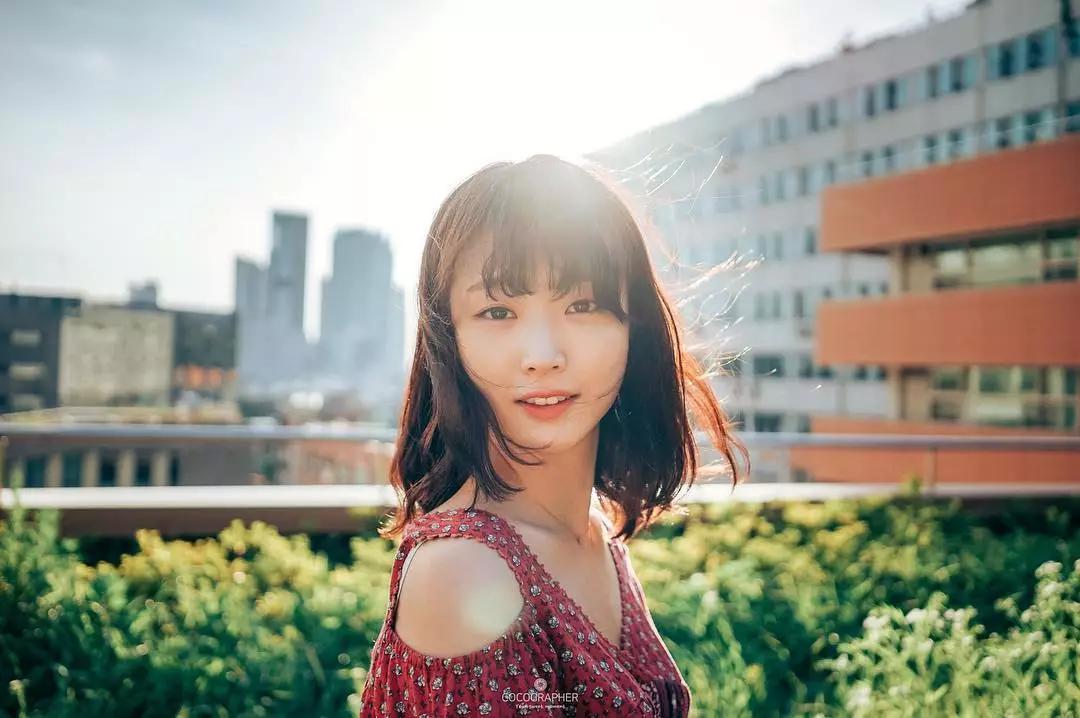 讓妹子的頭部遮擋身后太陽的部分,或者模特用手遮擋部分光線,減弱逆光的強度,畫面更有朦朧的意境。