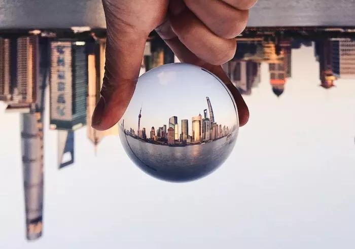 水晶球不單單是少女的玩物,它可以將你眼前的景致翻轉,呈現一個倒立的世界,好像看到一個微觀版平行世界。