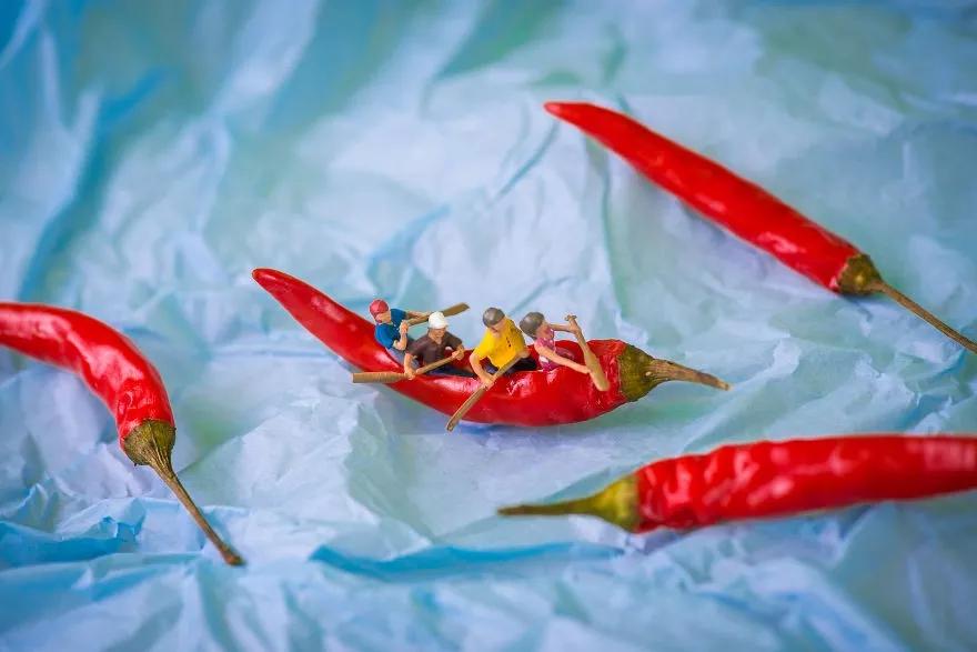 來(lái)自匈牙利布達(dá)佩斯的美食攝影師彼得近三年改變了以往的攝影風(fēng)格,他利用微縮模型、食物和日常用品搭配組合,創(chuàng)造了一個(gè)名為“Tiny Wasteland”(袖珍荒原)的攝影系列。