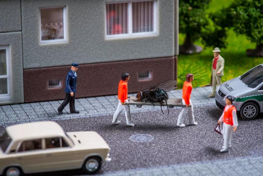 即使明明知道這些照片是“假”的,只是在用小模型在模擬現(xiàn)實(shí)生活場(chǎng)景,可因?yàn)閿z影師奇趣無(wú)限的想象力,也會(huì)讓觀眾忍不住一張張翻下去,看看下一張又會(huì)出現(xiàn)什么意料之外的場(chǎng)景。