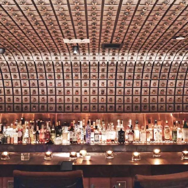 J.Boroski 其實跟 The Iron Fairies 一樣,出自 Ashley Sutton 和 Joseph Boroski 之手。空間格調更時尚和華麗,但最讓人震撼的吧臺后面整面墻的甲蟲裝飾一眼就能看出是他的設計。