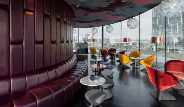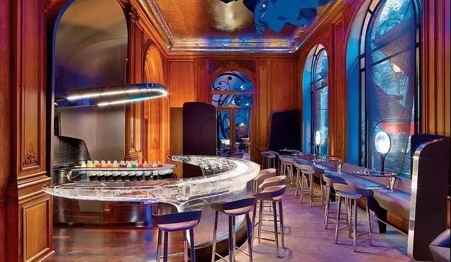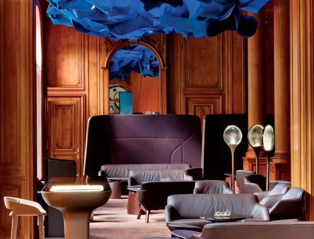 巴黎Plaza Athénée酒店的Le吧的設(shè)計,展現(xiàn)了古典建筑與現(xiàn)代藝術(shù)的完美融合,天花頂?shù)乃{(lán)色云朵裝置是最大的亮點,現(xiàn)代的創(chuàng)意家具讓空間品位十足,也體現(xiàn)了巴黎的優(yōu)雅。