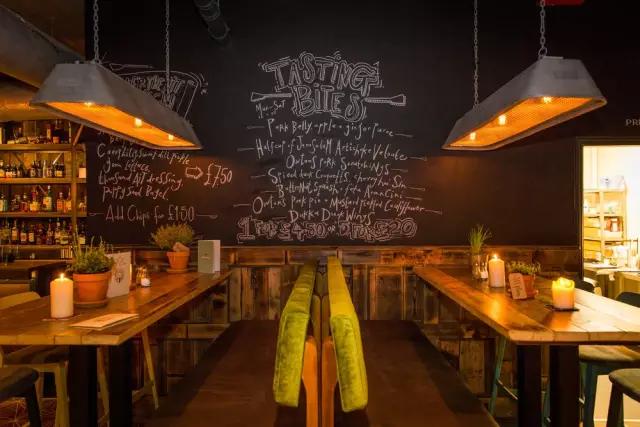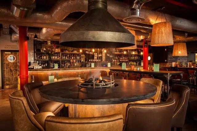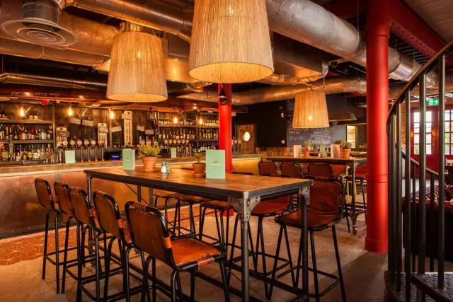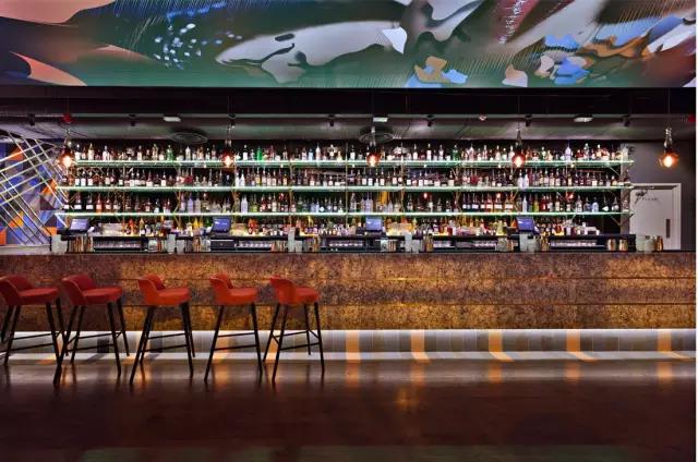 由英國著名設(shè)計事務(wù)所Design research studio設(shè)計的Craft吧最明顯的符號是英國Tom Dixon的家具,富有個性的吧凳與金屬的吧臺飾面就是最佳搭配,天花的藝術(shù)噴繪為空間融入濃厚的時代氣息。