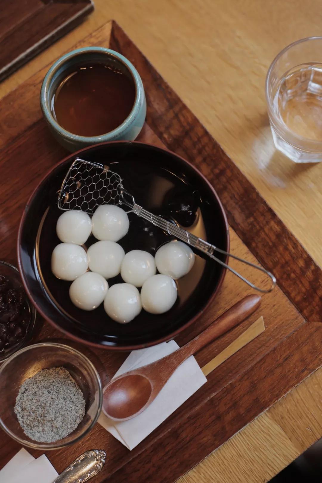 事先并沒有做功課,依著菜單上的圖例隨機點,也不會出錯。糯米愛好者第一時間選擇Shiratama with Hoji-Tea,著實敦樣的糯米圓子,在紅豆沙、芝麻粉與黃豆粉的包裹之下,滿溢著Q彈與充實。