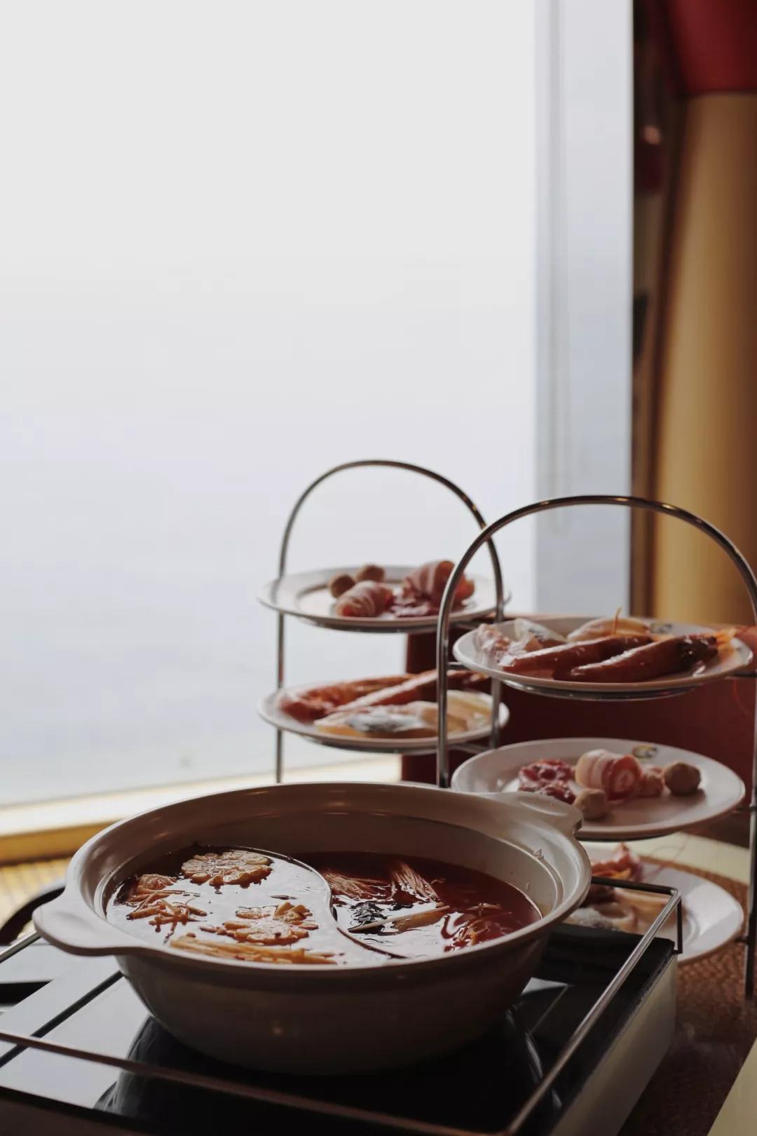 滾熱的油、辛辣的香,聽咕咚咕咚的煮沸聲,吃進去是咂舌的快意。熱騰騰的食物堆在一只鍋里其樂融融,抬眼一望,窗外是同樣起起伏伏的海浪,這樣的涮鍋經歷大概也是獨一份了。
