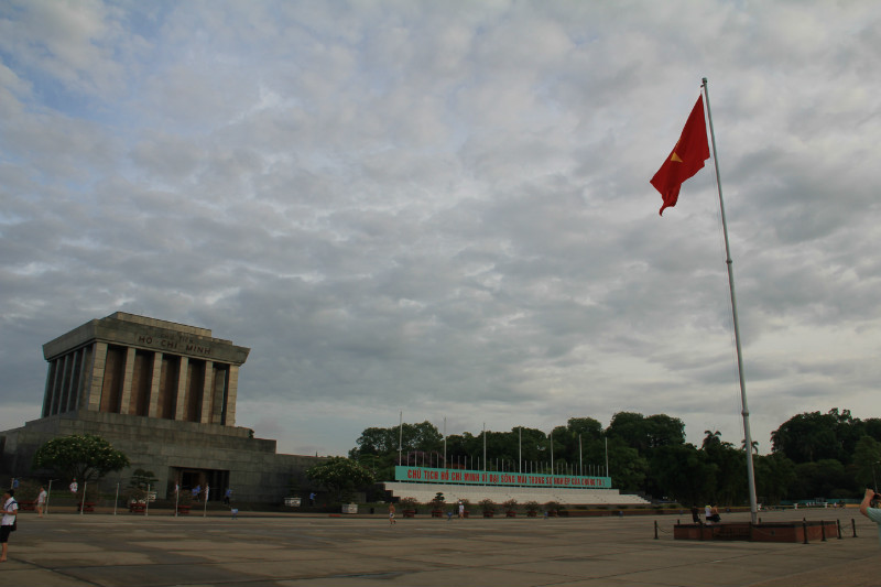 巴亭廣場西側高聳著胡志明主席的陵墓,墓前的花崗巖石壁上鐫刻著胡志明的名言“沒有什么能比獨立、自由更可貴了”。