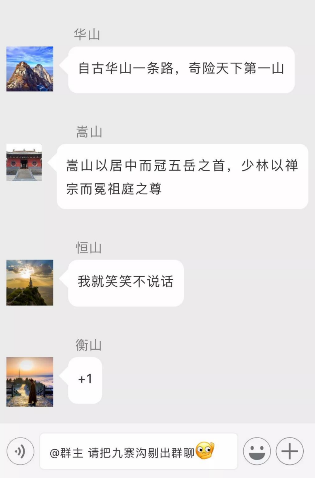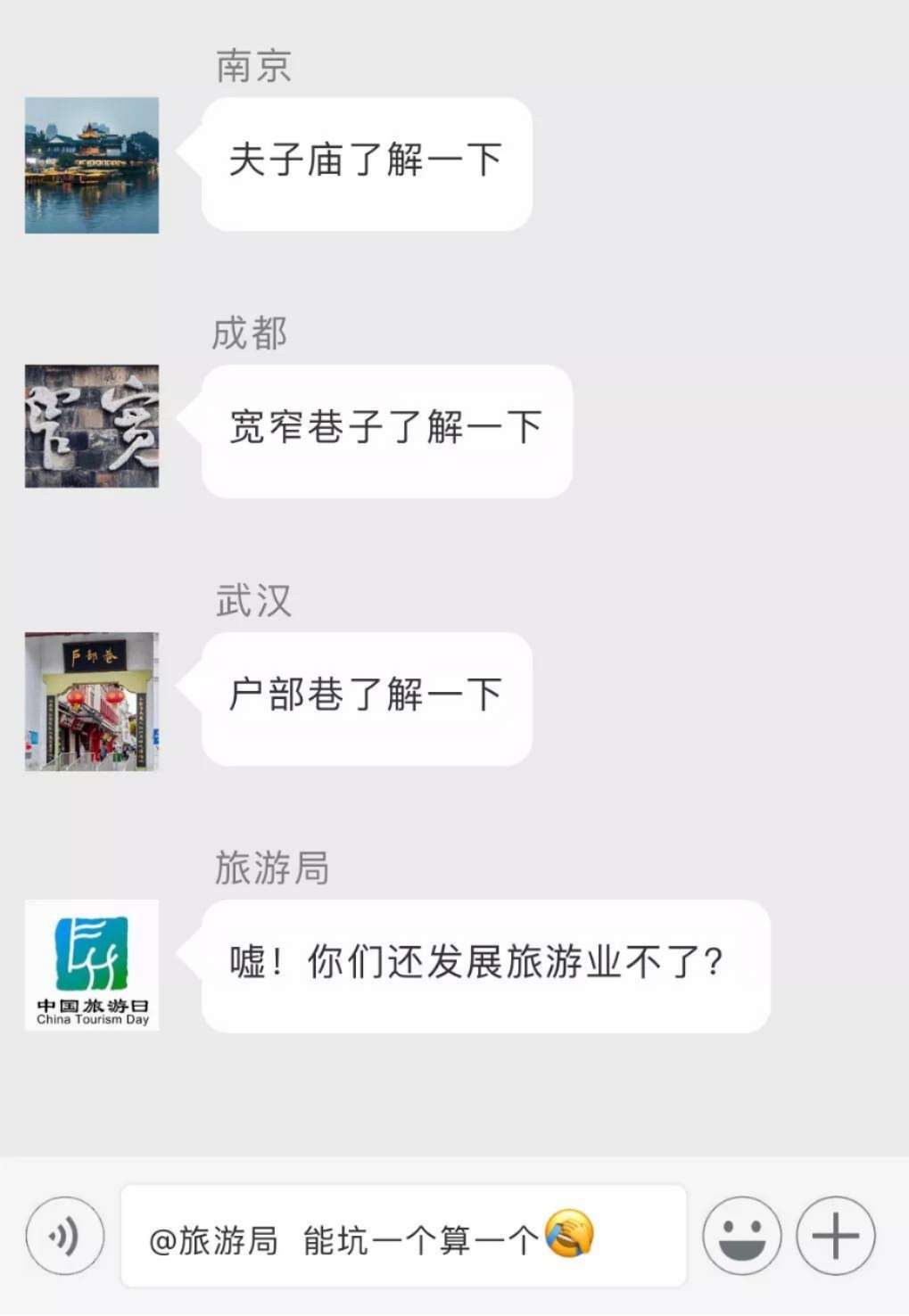 那么,一個腦洞大開的問題來了。如果把中國各大景區全部拉入一個微信群,他們會聊些什么呢?