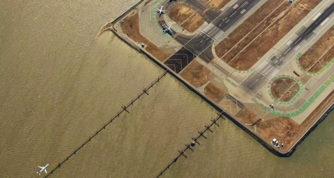舊金山國際機場(SFO)有四條跑道。這是我拍攝的編號28號的跑道降落端處的罕見景觀。我一直夢想著從空中記錄這個繁忙機場的動感時刻。經過申請,我終于獲準從機場上空直接駕駛飛機經過。這是一個大風天,機場的風速在每小時35-45英里。強烈的飛行顛簸,讓一邊控制飛機,一邊忙著拍攝的我簡直手忙腳亂。這次飛行拍攝很有挑戰性,但它也是如此的令人激動,完成這個拍攝計劃讓我幾天都睡不著。
