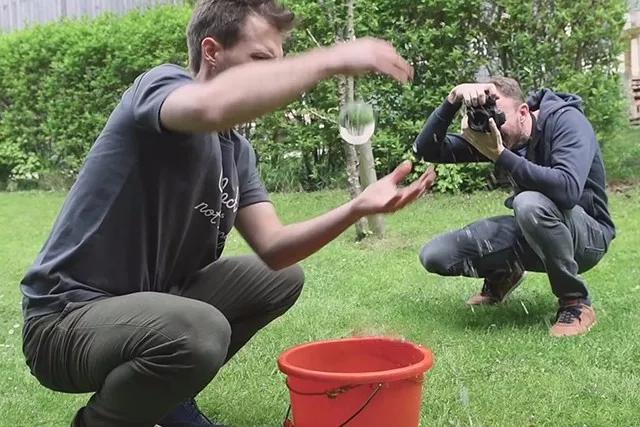不斷調整拍攝角度和球體位置,你會發現球內的分界線位置也會不斷發生變化。你需要選擇一個角度,使球體倒影和現實中的分界線重合。