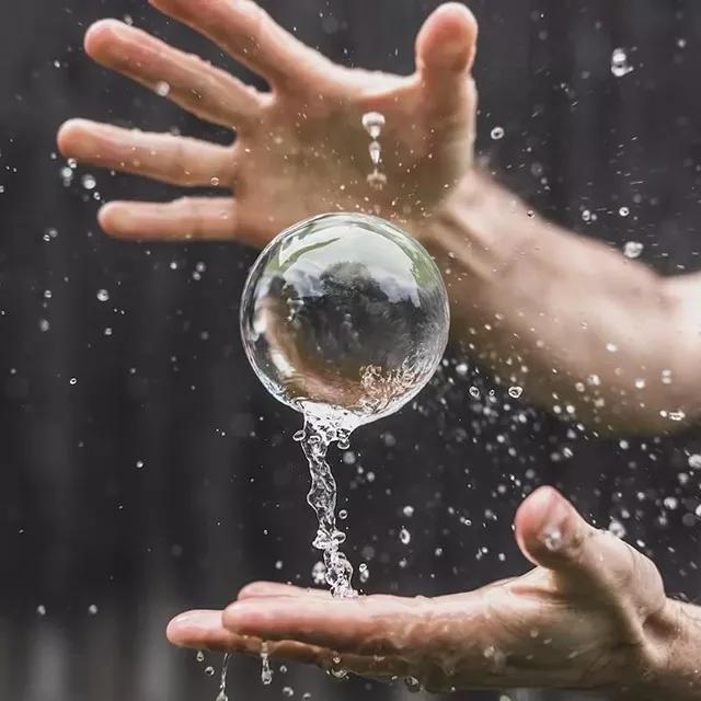 比如說,你可以讓一個朋友放入水中,然后將水晶球帶著水花拋出,重復這一過程;你在一旁用高速快門抓拍在空中的球體: