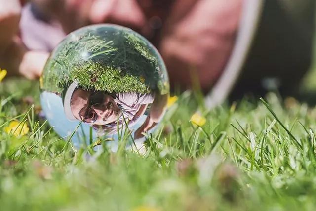 使用水晶球進行聚焦,不僅可以實現放大,還可以利用畸變來使紋理產生一定的變化感;再利用小/清晰虛像與大/模糊實景的對比,會讓作品顯得更有趣。