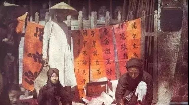 在市集出售對聯的商販