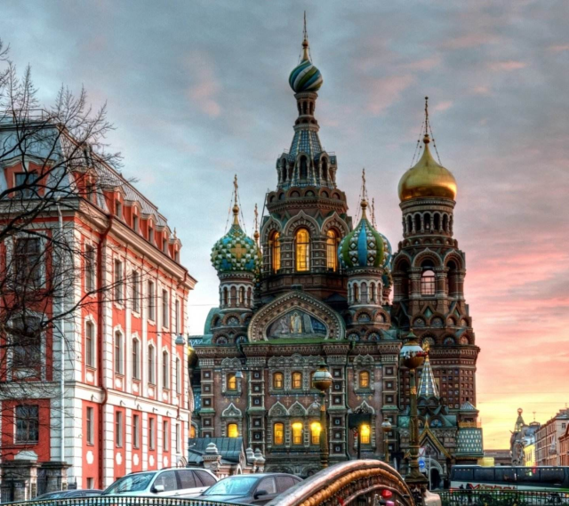 滴血大教堂(Спас на Крови)也被稱為復活教堂,滴血教堂建造于1883年至1907年, 是圣彼得堡地區少有的純俄羅斯風格建筑,1881年3月1日亞歷山大二世皇帝在此遇刺身亡,所以教堂命名為滴血教堂。 滴血大教堂輪廓美麗,裝飾花花綠綠,鑲嵌有復雜、顏色艷麗的影像圖案,用豐富的彩色圖案瓷磚、搪瓷青銅板裝飾,教堂頂部還立著五光十色的洋蔥頭頂。與古老俄羅斯風格與附近的古典式的建筑物成鮮明對比,反映了俄國十六和十七世紀的典型的東正教教堂建筑風格。