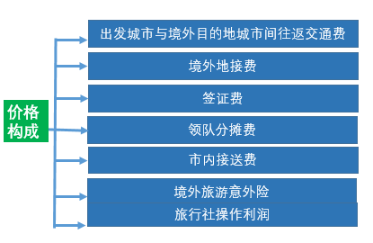 出境組團(tuán)社服務(wù)網(wǎng)點(diǎn)(代理旅行社、在線平臺(tái))對(duì)游客報(bào)價(jià)=出境組團(tuán)社報(bào)價(jià)+服務(wù)網(wǎng)點(diǎn)(代理旅行社、在線平臺(tái)利潤(rùn))。