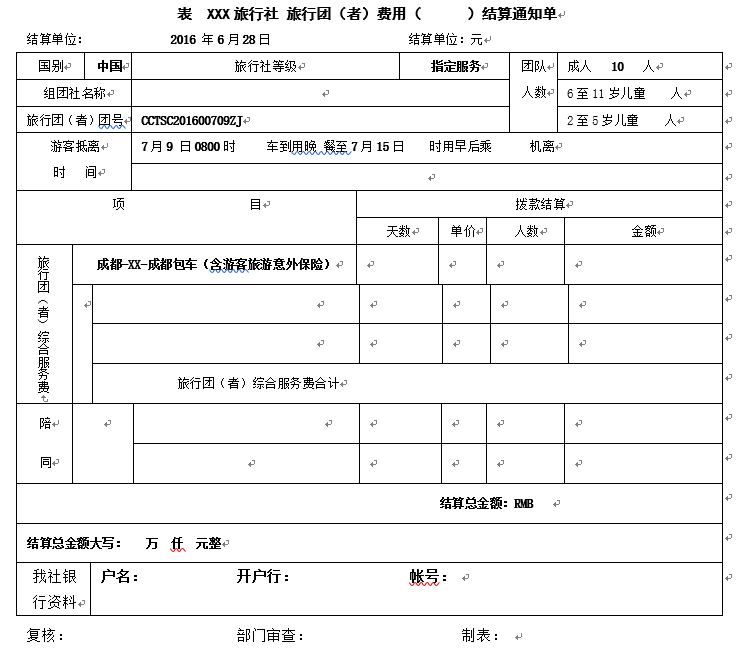 單項委托合同簽訂好之后,組團社就應該給團隊或個人發一個費用結算通知單,敦促對方把錢劃在賬戶上。