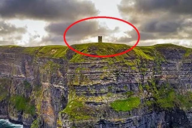 按照圖片作者的描述,“懸崖頂上的城堡為畫面提供了空間標尺,讓觀眾能直觀地體會到懸崖的高度”。WTF?城堡?哪兒呢?