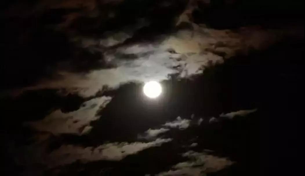 由于整體環境光的不足,相機在自動曝光模式下很可能開大光圈或調高快門,導致本來就挺亮的月亮過曝: