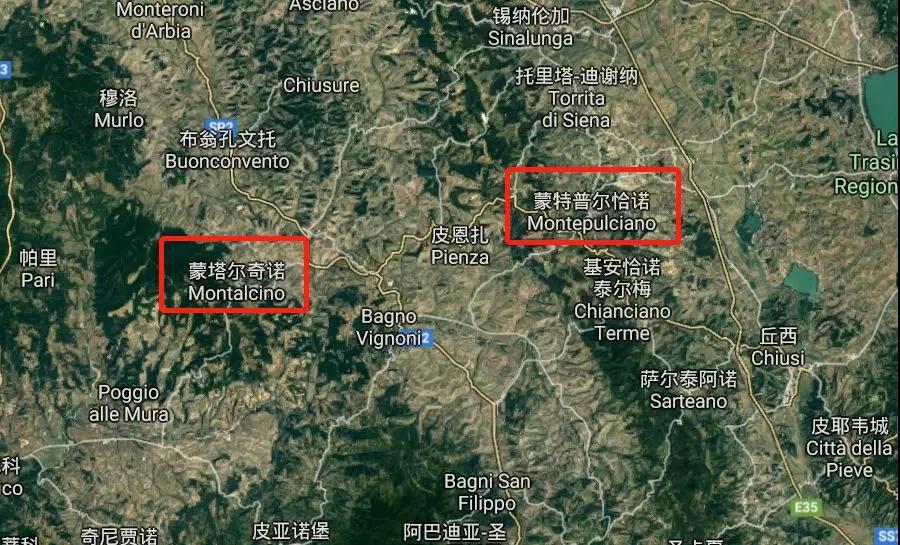 蒙塔爾奇諾(Montalcino),是托斯卡納的一個小鎮名,而蒙特普齊亞諾*(Montepulciano)則是葡萄品種名。