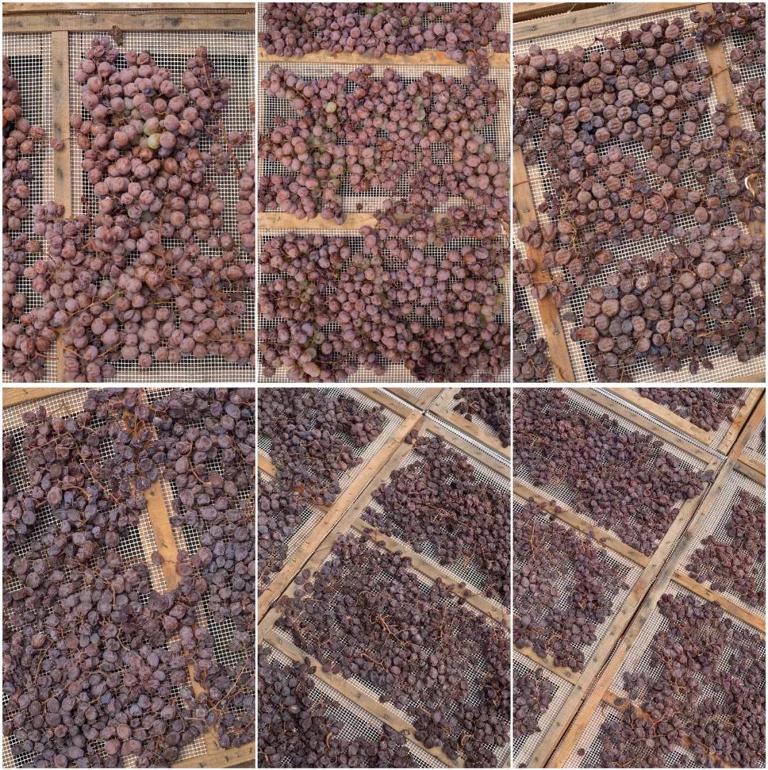 這種極其講究的Passito的釀造工藝概括一下,就是把健康的葡萄像PX葡萄那樣暴曬成葡萄干、像TBA一樣粒選、像托卡伊Aszú一樣釀造(葡萄干分批添加到新鮮葡萄汁中發酵),最后做成叫Passito的風干甜白葡萄酒(沒有貴腐影響)。