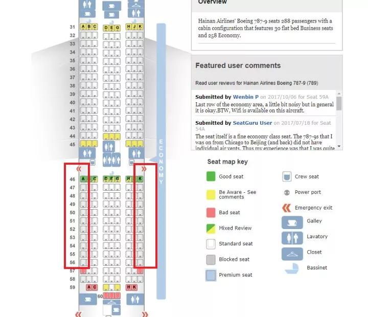 寬體客機(jī)座位示例圖