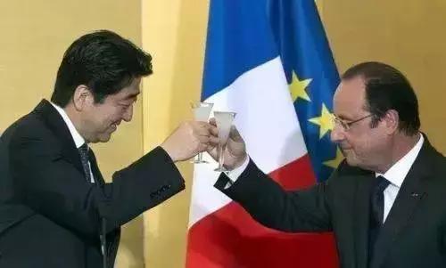 ▲ 在2014年的一場宣傳日本料理的活動上,日本首相安倍晉三和法國前總統奧朗德品嘗日本清酒