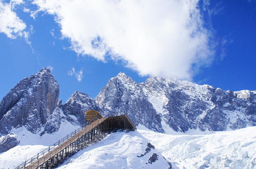 乘坐【冰川大索道】(如遇不可抗拒因素,大索道可調整為小索道。①遇大風、大雪等天氣,索道停運;②索道公司定期維修停運;③黃金周國慶和春節,7、8月旺季,索道公司限票部分游客上不了索道)登臨雪峰,飽覽姿態萬千的雪域風光,抒發一覽眾山小的凌云壯志;萬年不化的冰川近在眼前,云南橫斷山脈的秀美,一覽無余;