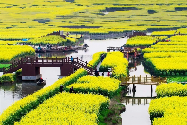 7、千垛水上油菜花景區(qū):從“水陸空”不同角度感受全球四大花海之一千垛水上油菜花;?