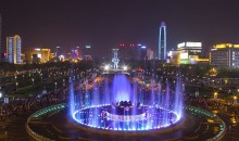 泉城廣場,自由游覽。泉城廣場東西約780米,南北寬約230米,面積16.96公頃。設(shè)計以貫通趵突泉、解放閣的邊線為主軸,以榜棚街和濼文路的延續(xù)為副軸而構(gòu)成框架。各功能分區(qū)圍繞軸線由西向東依次展開。廣場主入口處,莊嚴(yán)的國旗迎風(fēng)飄揚(yáng),國旗下“泉城廣場”四個在字銘刻于入口標(biāo)志之上,其背面刻有《泉城廣場記》。