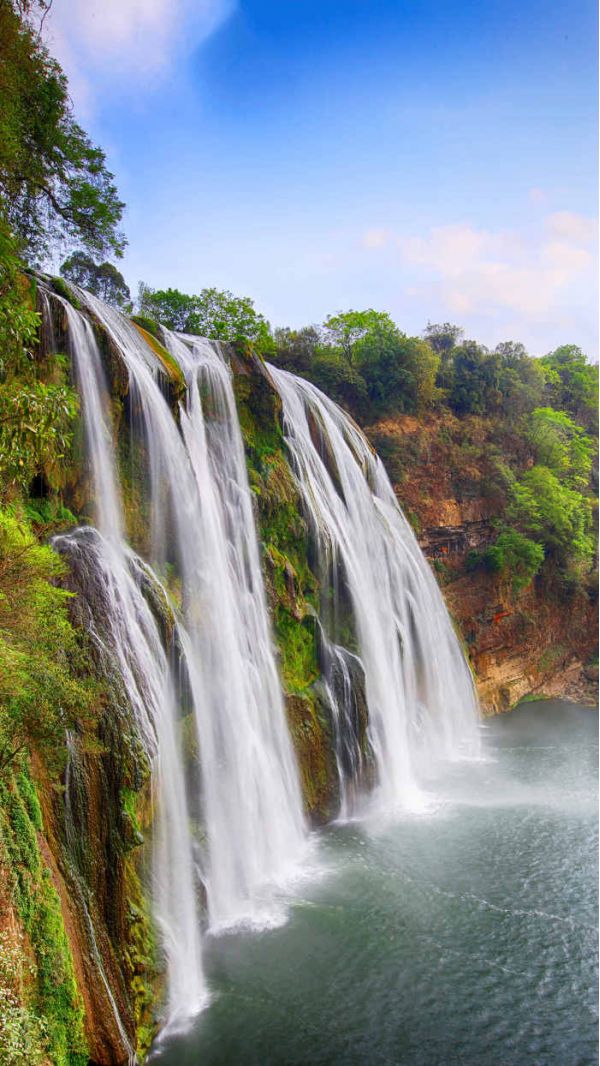 上午:酒店早餐后乘車前往中國第一批“國家重點風景名勝區”,國家 AAAAA 級風景區【黃果樹風景區】(車程約 0.5小時);換乘景區環保車,游覽有水上石林、天然盆景之稱的 【天星橋盆景園】 (游覽不少于 3H);這里頑石突兀而 起,星羅棋布,一路欣賞高老莊 【天星湖】等著名景觀。之后游覽亞洲最大,貴州必游景點 【黃果樹大瀑布】 (不含黃果樹景區環保車 50 元/人,保險 10 元/人,必須消 費敬請自理,不含黃果樹景區內扶梯 50 元/人,屬不必須消費項目,自愿消費),游覽不少于 2H;黃果樹大瀑布寬 101 米,高 77.8 米是世界上唯一可以從上、下、前、后、左、右六個方位觀賞的瀑布,游 【水簾洞】能從洞內外聽、 觀、摸瀑布,感受瀑布之美,觀 【犀牛潭】,品大自然之奇妙。