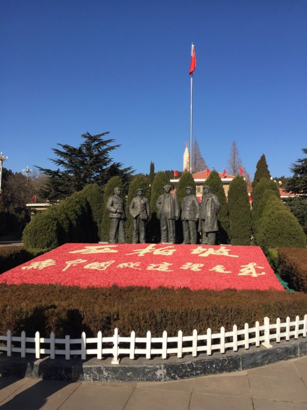 2.在五大書記塑像前合影留念,緬懷革命先輩英雄事跡,了解西柏坡在中國革命中的光輝歷史,感受發揚西柏坡精神的意義;