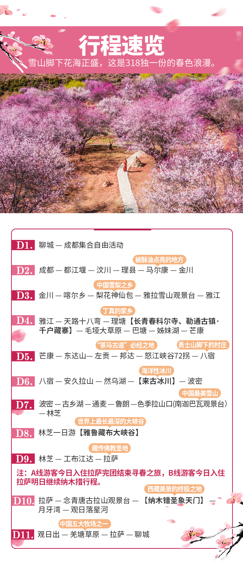 林芝桃花+金川梨花+南迦巴瓦峰+理塘+然烏湖+來古冰川+納木錯圣象天門+怒江72拐+羌塘草原+雅魯藏布大峽谷