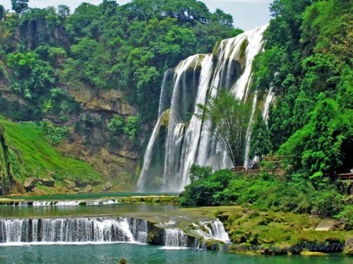 公元1637年,徐霞客途經(jīng)黃果樹(shù)瀑布時(shí)曾描述說(shuō):“所謂:珠簾鉤不卷,匹練掛遙峰。俱不足以擬其狀也,蓋余所見(jiàn)瀑布,高峻數(shù)倍者有之而從無(wú)此閣大者,但從其上側(cè)身下瞰,不免神竦。”自此,這里以水勢(shì)浩大著稱(chēng),漸被認(rèn)可為全國(guó)第一大瀑布。