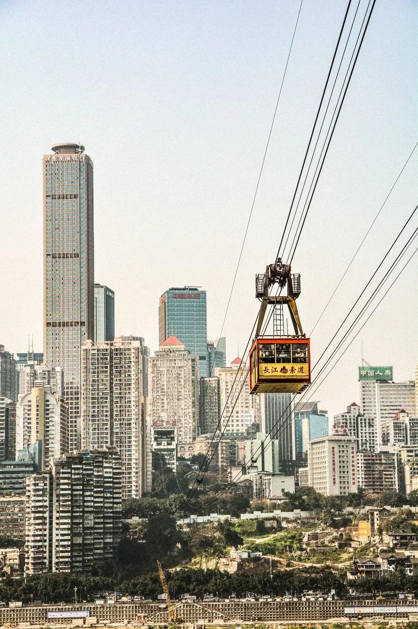 搭乘能容納50人的巨型“箱子”,腳下是濤濤的江水,身側是氣派的大橋,前方是林立的高樓,千余米的距離、5分鐘的時間,足以一窺山城的無限魅力。