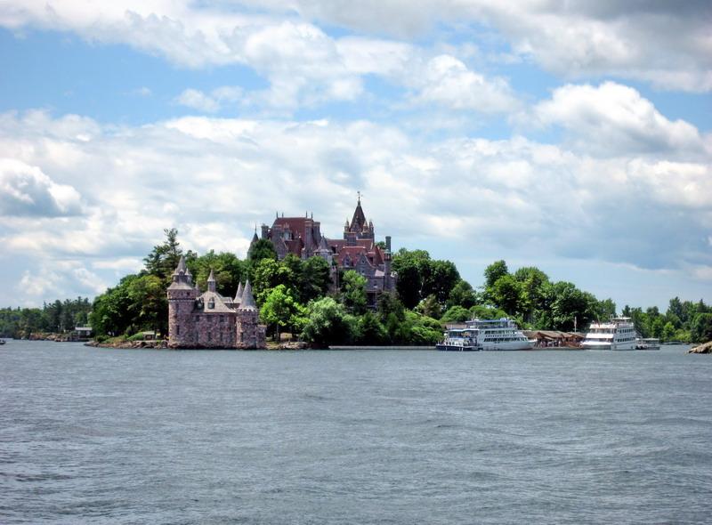 遠處有一個心島,1900年喬治•博爾特投資2500萬美元,興建羅賓蘭德古堡獻給他的妻子露易斯,不幸的是1904年他的妻子逝世了。此建筑物又叫博爾特古堡。他傷心欲絕,再也沒有踏上島上一步,而將它捐給了美國政府。