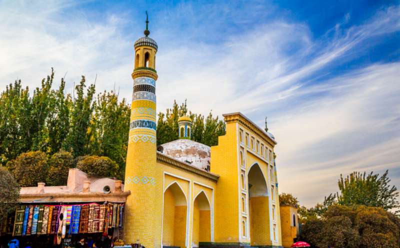 艾提尕爾清真寺是一個有著濃郁民族風格和宗教色彩的伊斯蘭教古建筑群,坐西朝東。