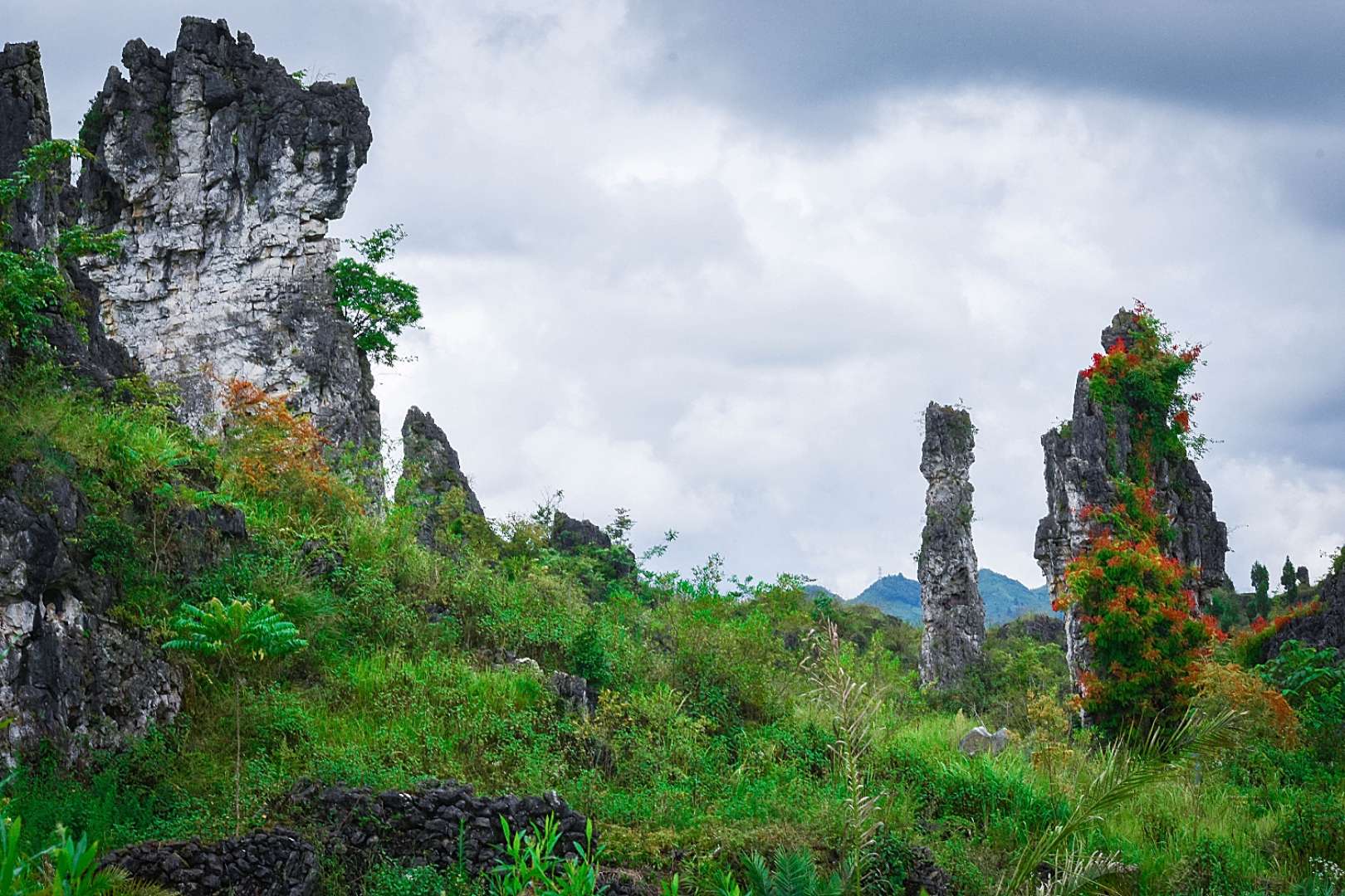 蝕、侵蝕作用,殘留下形態千姿百態的奇石,處于地貌發育的晚期。竹林堡石林是一個天然奇石園,園中一石一景、一石多景比比皆是。有屹立在入口處的迎賓石——天然華表,有一石三景的夜郎王、老鷹哺食、母子情深,有遠古祖先的頭骨化石,有酷似豬頭的八戒石,有身披鎧甲的將軍出征石,有直插云霄的神箭石,有深邃的思想者,有大慈大悲的蓮花觀音,有桃園三結義的劉、關、張,真是數不勝數。奇石園似乎記錄了一部人類歷史,展現了一幅幅生動畫卷,具有極高的美學價值和觀賞性,給人無限遐想,讓人流連忘返。