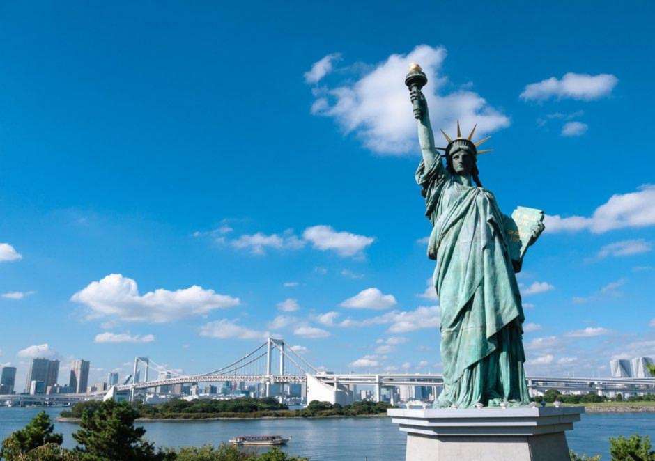 東京的自由女神不僅形象和美國的那座一模一樣(當然尺寸要小得多),連周圍的景致也很相像——如果不是因為有彩虹橋這座標志性建筑作背景,版權所有山東聊城聊之旅國際旅行社有限公司,轉載必究!神像身后的港灣簡直跟哈德遜河沒什么兩樣;東邊不遠處的兩幢高樓,更是猶如雙子塔再生,一時真有“錯把東京當紐約”之感。看到照片的朋友們,他們一致感嘆:日本不愧是美國的好跟班兒啊!