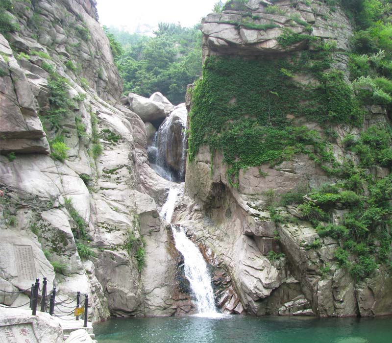 澗南是北九水療養院,澗北是太和觀舊址,又稱九水廟。西山有仙古洞,洞內壁光滑,為卵形,巖石結成,高2米,深3米。明代登州武舉周魯曾題刻“仙古洞”三字于洞左,版權所有聊城聊之旅旅行社有限公司,轉載必究!為叢林所蔽,游人多不知,在山坡巨石上另有題刻“仙古洞”三字。內九水自北九水療養院溯流而上至靛缸灣,長約3公里。兩山夾立,水流中穿,峭壁危巖,澄潭激湍,與外九水相比,內九水峰巒更加峭拔,峽間更為險峻,景物薈萃,奇境屢出,游人至此,目不暇接。內一水,為一山坳,遠山近岫,一派清秀,橋兩側潭寬水闊,流清石奇。內二水,溯澗上行至雙石屋,倚崖臨水,松竹交蔭,潭光山色。村中有20余戶人家,因村旁有兩石洞似屋而得名。雙石屋村南,巨石橫陳澗底,潭處石間,澄泓湛碧,寒氣凌人,名“印月潭”。