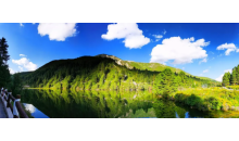 二道海景區為一狹長山溝,長達5公里,有棧道相連。從營區沿棧道上行,沿途可觀賞到小海子、大海子、天鵝湖、翡翠湖、犀牛湖等。個個宛如珍珠、寶石。有的藏匿于密林之中;有的袒露在藍天之下。湖水清澈透明,水面如鏡,翠林倒映水中,一派清新年湛藍的景色。夏秋季節,滿湖開滿潔白的水牽花,花海難分,極具特色。海與海之間由棧道連接,錯綜復雜座涼亭為群海添上幾分野趣。