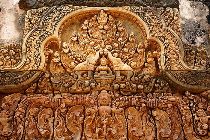 建于十世紀的女皇宮,充分展現了吳哥時期高超的雕刻功力,細膩而傳神的刻畫,代表了吳哥人民的藝術天份,與對宗教的信仰熱忱。紅色的石墻,生動的故事,交織出一幅幅柔美的圖畫,不斷訴說著印度史詩中的各個章節;透過浮雕的傳達,前人藉此留下印記,即使是過了幾個世紀之久,后代的人們都還能從中讀出一二,歷史不朽也就是如此了。