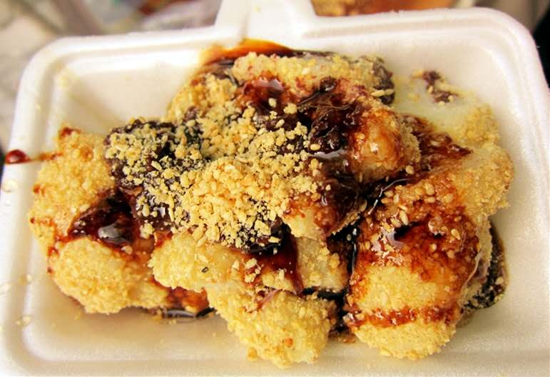 西安鏡糕:陜西的傳統小吃,以糯米為原料蒸制而成的形狀似圓鏡的糕。經營鏡糕者多系攤擔叫賣。清朝有詩云:“柳蔭槐下清晝長,鏡糕擔子亦生香”的詩句。還沒進回民街,在鼓樓的下面就有很多賣鏡糕的小車,鏡糕放在很小的籠屜里,很小,上面有紅紅綠綠的調料,要吃的時候會再給蘸上芝麻和糖。