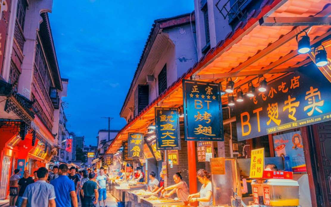 滿為患,連店門口也會擺滿桌椅。烤肉串、涮牛肚的煙火在不甚明亮的燈光下彌漫整條街,熙熙攘攘的人群都是邊逛、邊吃,看到小攤上中意的東西就和攤主還還價。還可以到鼓樓廣場的座椅上歇歇腳,看賣風箏的小販把數十米長的風箏一直放到馬路對面的高樓頂上,一切都充滿真實熱鬧的生活熱情。