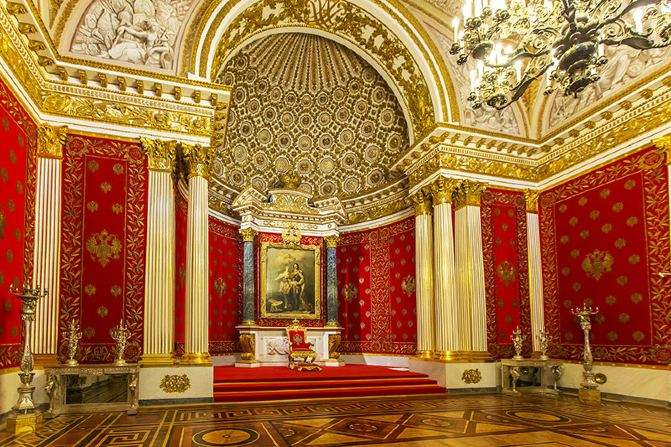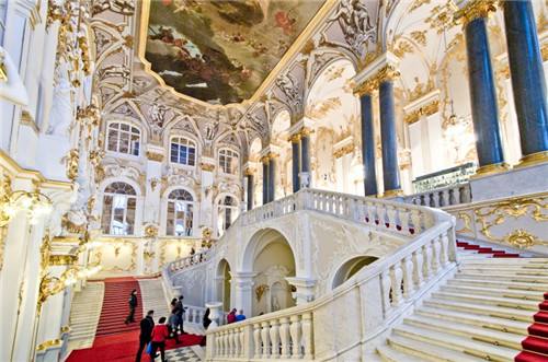 冬宮是俄羅斯著名的皇宮,同時也是世界上最大最古老的博物館之一。該宮由著名的建筑師拉斯特雷利設計。正如人類歷史上其它著名的宮殿一樣,該宮殿自從建成以來一直備受劫難。冬宮初建于1754至1762年間,1837年被大火焚毀,1838至1839年間重建,第二次世界大戰期間再次遭到破壞,戰后被精心修復。宮殿共有三層,長約230米,寬140米,高22米,成封閉式長方形,占地9萬平方米,建筑面積超過4.6萬平方米。冬宮的四面各具特色,但內部設計和裝飾風格則嚴格統一。四角形的建筑宮殿里面有內院,三個方向分別朝向皇宮廣場、海軍指揮部、涅瓦河,第四面連接小埃爾米塔日宮殿。面向冬宮廣場的一面,中央稍突出,有三道拱形鐵門,入口處有阿特拉斯巨神群像。冬宮四周有兩排柱廊,雄偉壯觀。宮殿裝飾華麗,許多大廳用俄國寶石—孔雀石,碧玉,瑪瑙制品裝飾,如孔雀大廳就用了2噸孔雀石,拼花地板用了9重貴重木材。埃爾米塔日是圣彼得堡最大的、最有特色的巴洛克風格建筑物。其完整性與華麗程度都令人印象深刻,裝潢豐富,窗上飾框及浮雕裝飾給人以力量,圓柱有規律的排列,墻表面由白色、綠色相間配合,使長長的外觀形形色色,生動起來。1917年2月前,冬宮一直是沙皇的宮邸,后來被資產階級臨時政府所占據。版權所有山東聊城聊之旅國際旅行社有限公司,轉載必究!1917年11月7日(俄歷10月25日)起義群眾攻下了冬宮。十月革命后,將原來官廷房舍和整個冬宮撥給艾爾米塔什,1922年正式建立國立艾爾米塔什博物館,冬宮成為博物館的一部分。1946年冬宮表面涂成起初的藍寶石顏色。