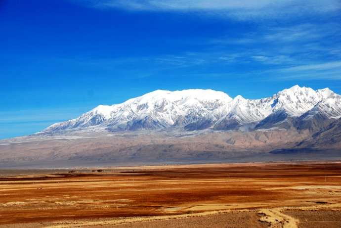 昆侖山西起帕米爾高原,山脈全長2500公里,平均海拔5500~6000米,寬130~200公里,西窄東寬總面積達50多萬平方公里,最高峰在于青、新交界處,名為新青峰——布格達板峰,海拔6860米,是青海省最高點。