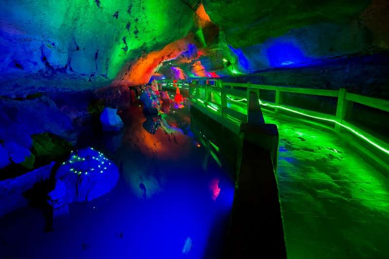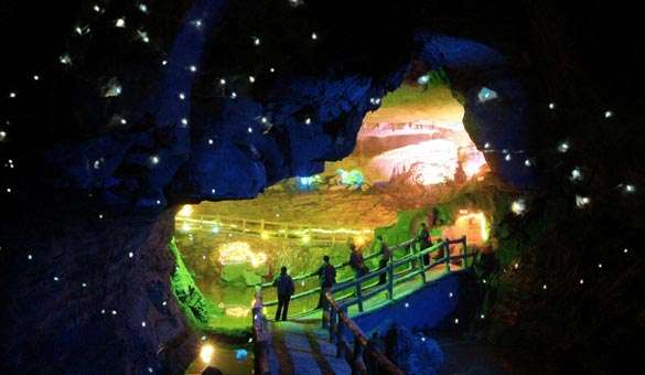 螢火蟲水洞形成于約0.65億年至2.3億年前,全長1200米,是“國家地質公園”、國家“AAAA級旅游區”。洞內有湖光山色、星際夢幻、黑洞探秘、幽谷星河、穿越時空等5個景段60余個景點。
