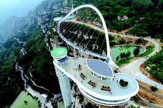 潭溪山百米觀光電梯—高空玻璃橋項目是潭溪山旅游區2016年開始建設的綜合性提升項目,共分為百米電梯、玻璃橋、懸崖酒店三個部分。其中,百米電梯采用360度全景觀光形式,運行高度為101米,玻璃橋為世界首例無背索斜拉弧形玻璃橋,橋面跨度117米,懸空高度110米。該項目填補了山東全省山水景區高空項目的空白。 | |