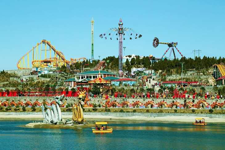 五龍山·響水河游樂園,位于輝縣市區東北方向5公里處的常村鎮,游樂園一期工程共投資1.2億元,建成了水上樂園、滑雪場、百鳥園、冰雕世界和178米長的空中走廊。 游樂園二期工程,概算投資8000多萬元,新建 “過山車”、 “大擺錘”、 “太空梭”、 “激流勇進”等大型陸地游樂項目,于2014年2月動工,春節開園運營。 總投資2億多元,占地面積3600畝,由五大主體工程組成的五龍山響水河游樂園,氣勢宏偉、規模壯觀,是集休閑、游樂、度假、觀光、垂釣、采摘、餐飲于一體的豫北地區規模最大、最具體驗價值的綜合性游樂園。地址:河南省新鄉市輝縣常村鎮常北村類別:樂園開放時間:09:00~17:30;所在地:新鄉。