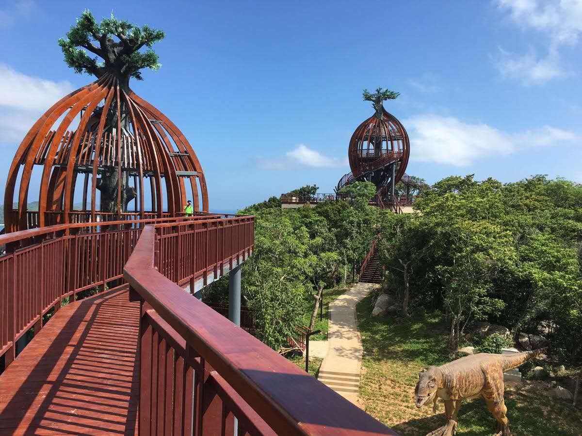 從景區主入口進入,依次參觀亞龍灣印象區:中心圖騰廣場、冰世界熱帶零度樂園、絲路貝殼館、絲路驛站海底餐廳、“蒙太奇炫影”潛水;濱海樂園區:水上樂園、“天下第一灣”、濱海浴場、亞龍灣愛立方海上婚紗基地;山海相望區:光陰流轉隧道、仁智橋、百歲階;觀海休閑區:時運廣場、不老松;山頂叢林區:“愛之巔”樹梢行走、碟繭樹屋、叢林仙境;蝴蝶谷生態區:開心樂園、蝴蝶谷生態園、蝴蝶谷博物館、雨林溪徑,然后按原路返回。