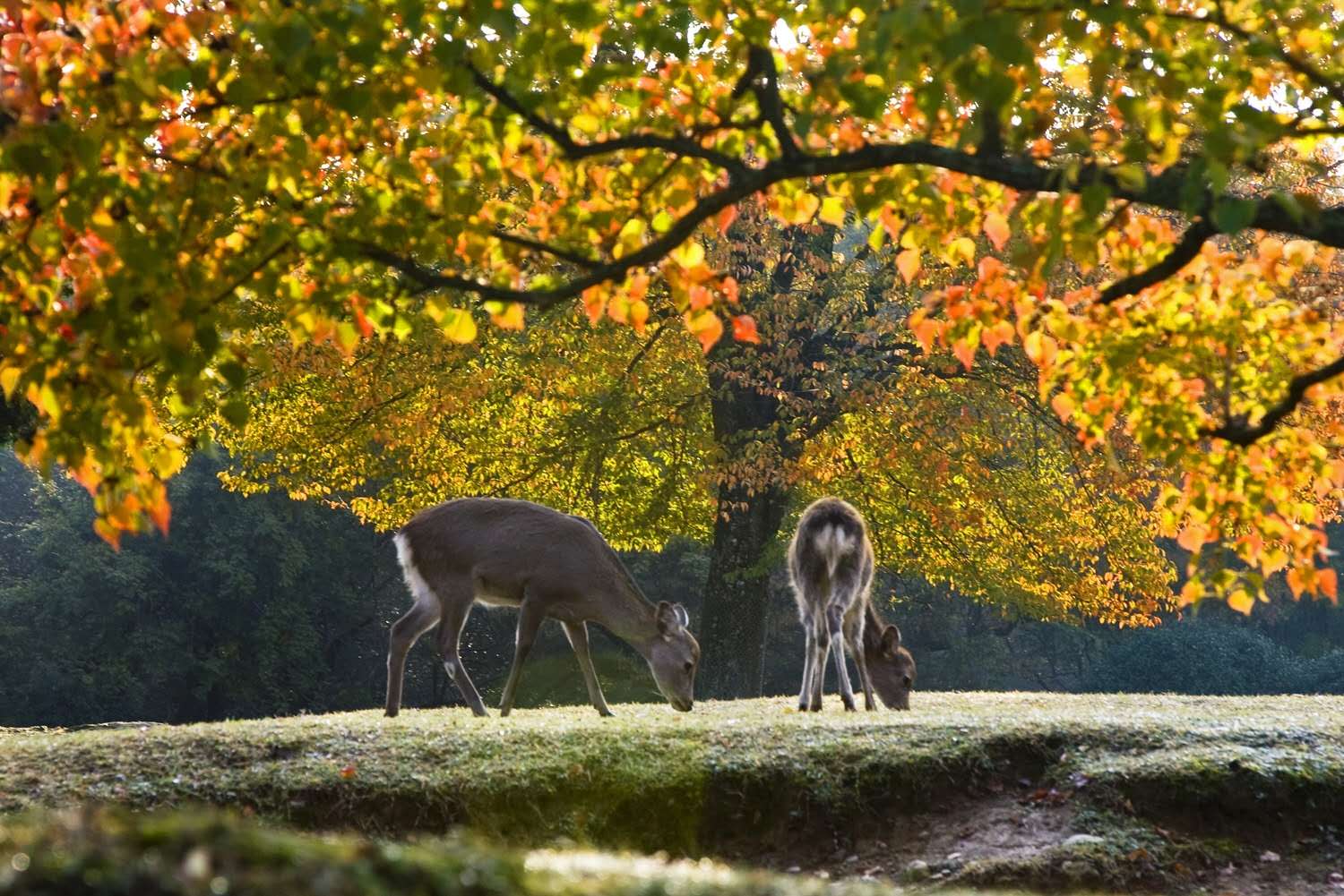 若草山:海撥342米,面積33萬平米。看似三山相疊的一個草坪山。登臨山頂,整個奈良盆地盡眼底。每年僅3月21日至6月15日,9月10日至11月25日,方可入山。